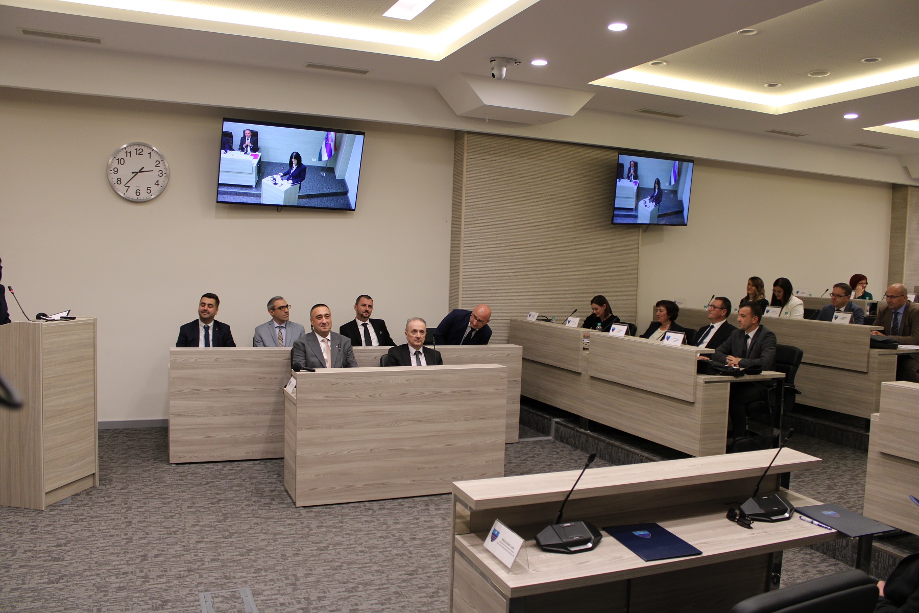 Nakon usvajanja dnevnog reda Skupštine Hercegovačko-neretvanskog kantona, poslanici su obavješteni da se konstituisao Klub poslanika Srba u Skupštini HNK te da je za predsjednicu Kluba izabrana Zora Dujmović, dok je Vesna Saradžić prijedlog Kluba za predsjedavajućeg ili zamjenika predsjedavajućeg Skupštine HNK.