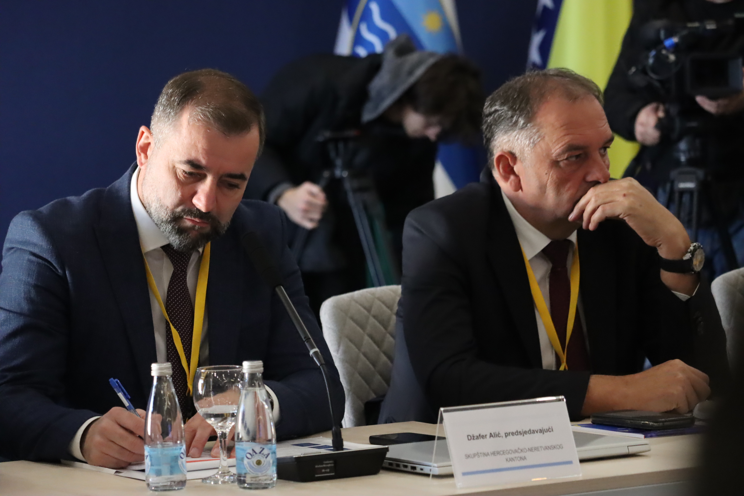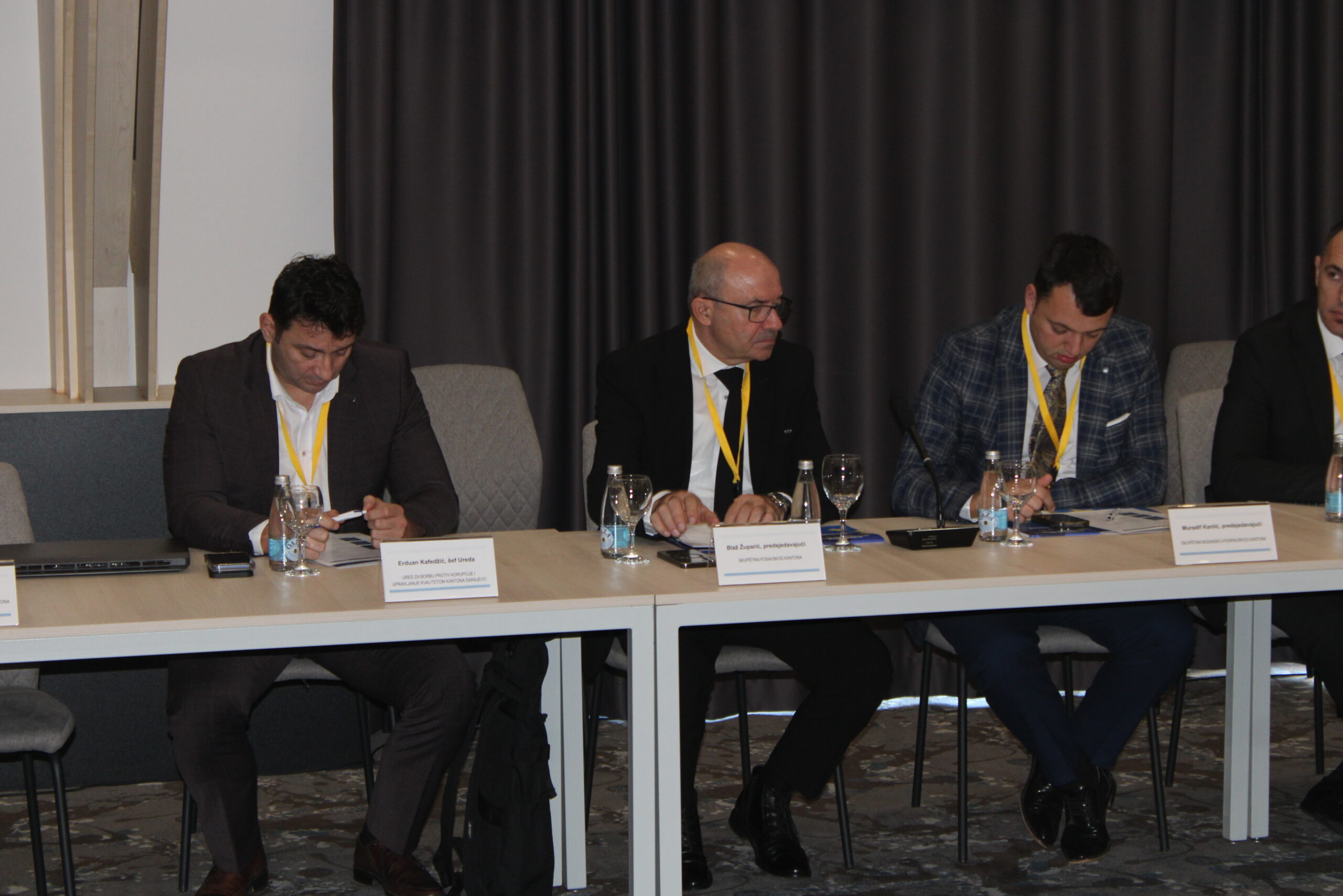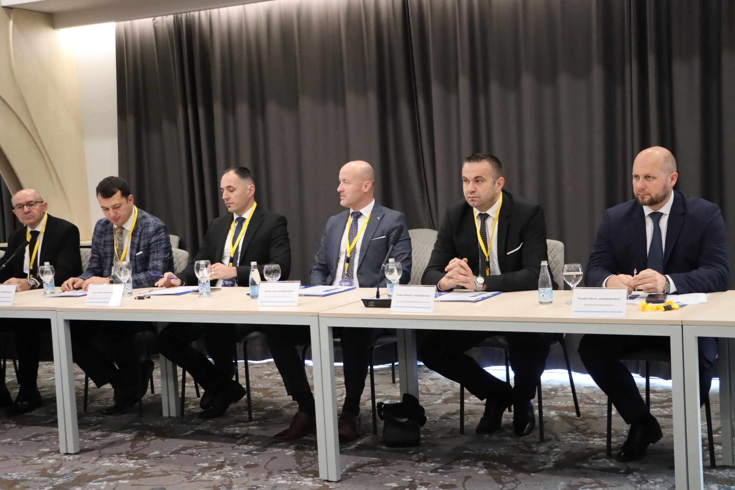 Predsjedavajući Skupštine Kantona Sarajevo Elvedin Okerić istakao je važnost jačanja saradnje kantonalnih parlamenata i harmonizacije zakona na nivou kantona, posebno u kontekstu ispunjavanja obaveza prema Evropskoj uniji. Naglasio je da je Kanton Sarajevo ostvario značajne rezultate u razvoju antikorupcijskih i sigurnosnih politika, kao i pronatalitetnih programa, te da ta iskustva dijeli sa ostalim kantonima.